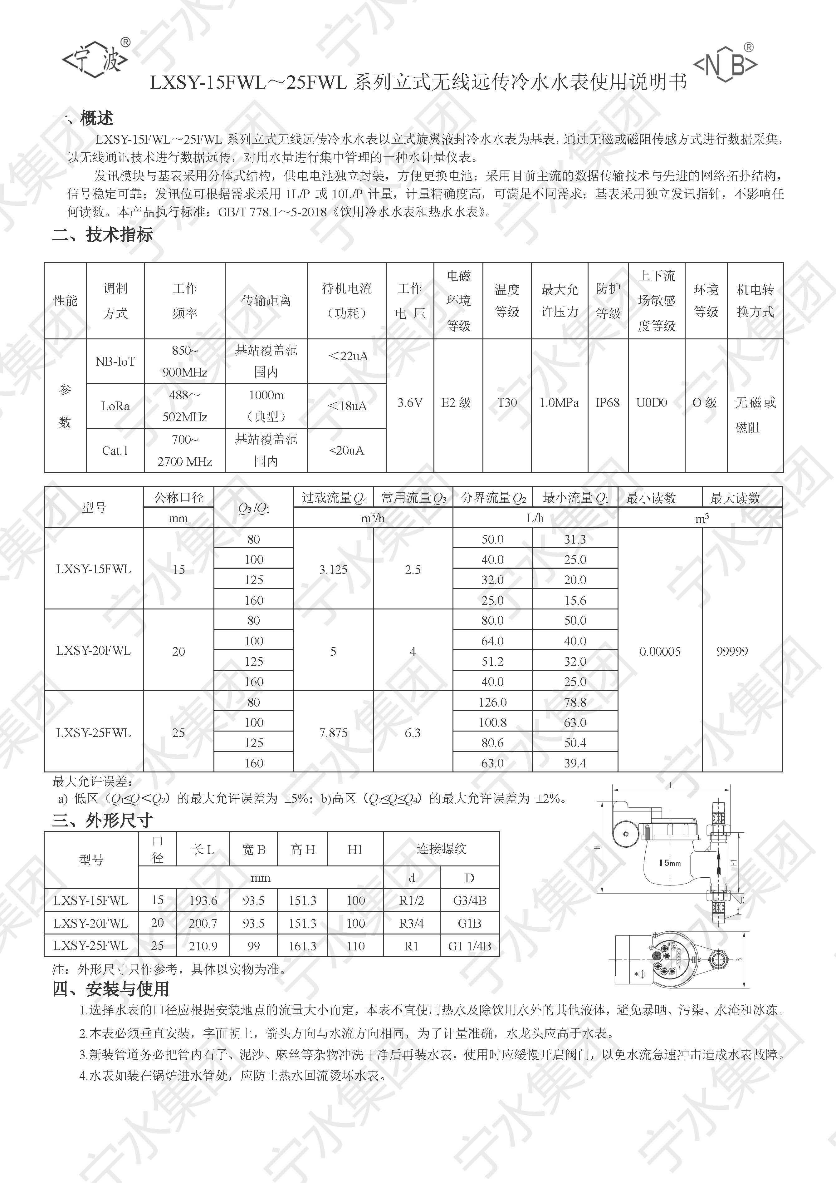 LXSY-15FWL~25FWL系列立式无线远传冷水水表