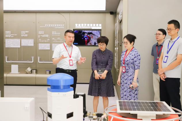 在智能计量设备展示区,工作人员重点介绍了自主研发的超声波水表、电磁水表及长距离管线传输服务。张红辉详细了解产品市场化应用情况,点赞企业“聚焦核心科技、创领智慧物联”的创新理念,并指出其深厚的技术积淀为行业高质量发展夯实了“硬支撑”。