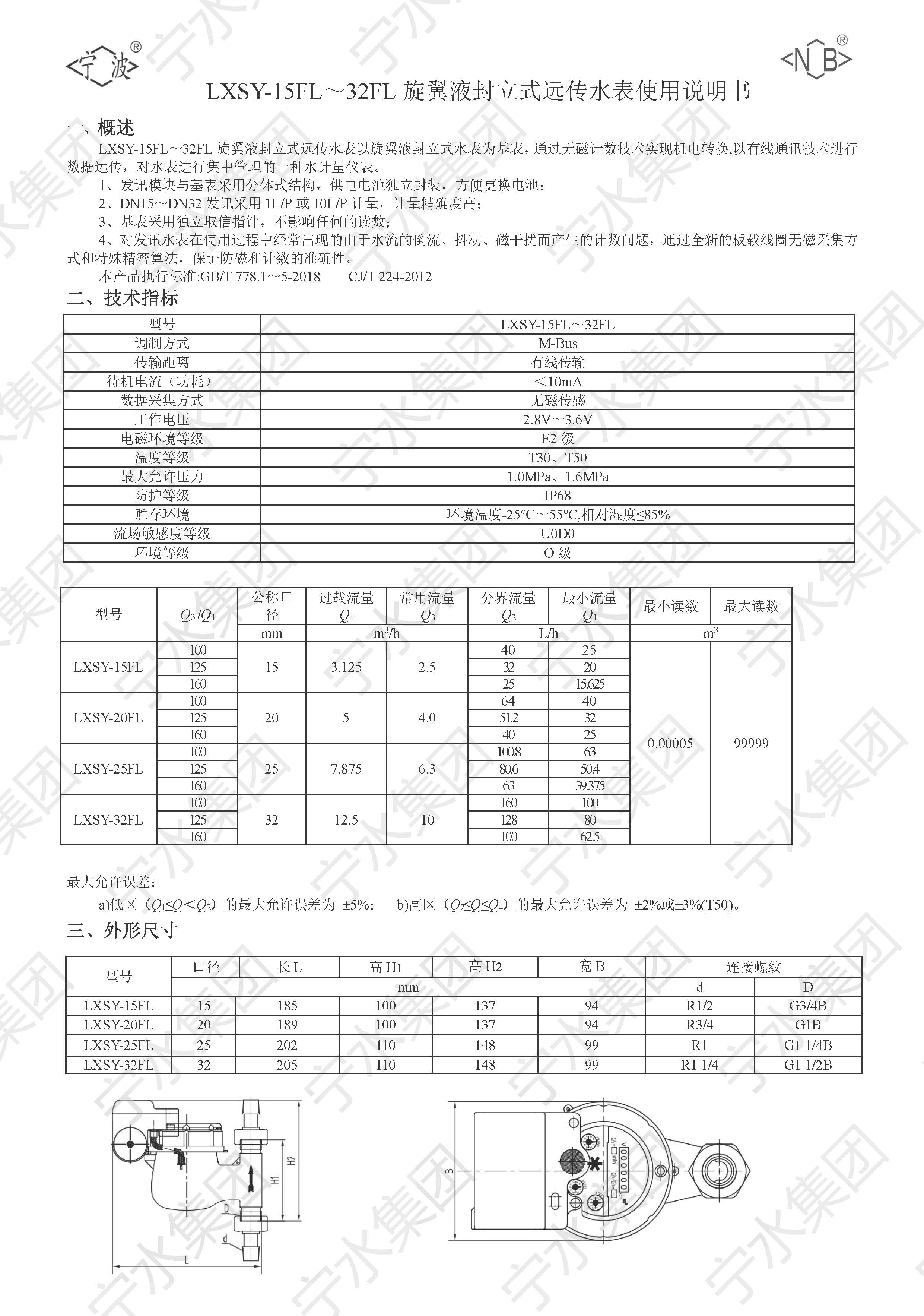 LXSY-15FL~32FL旋翼液封立式远传冷水水表