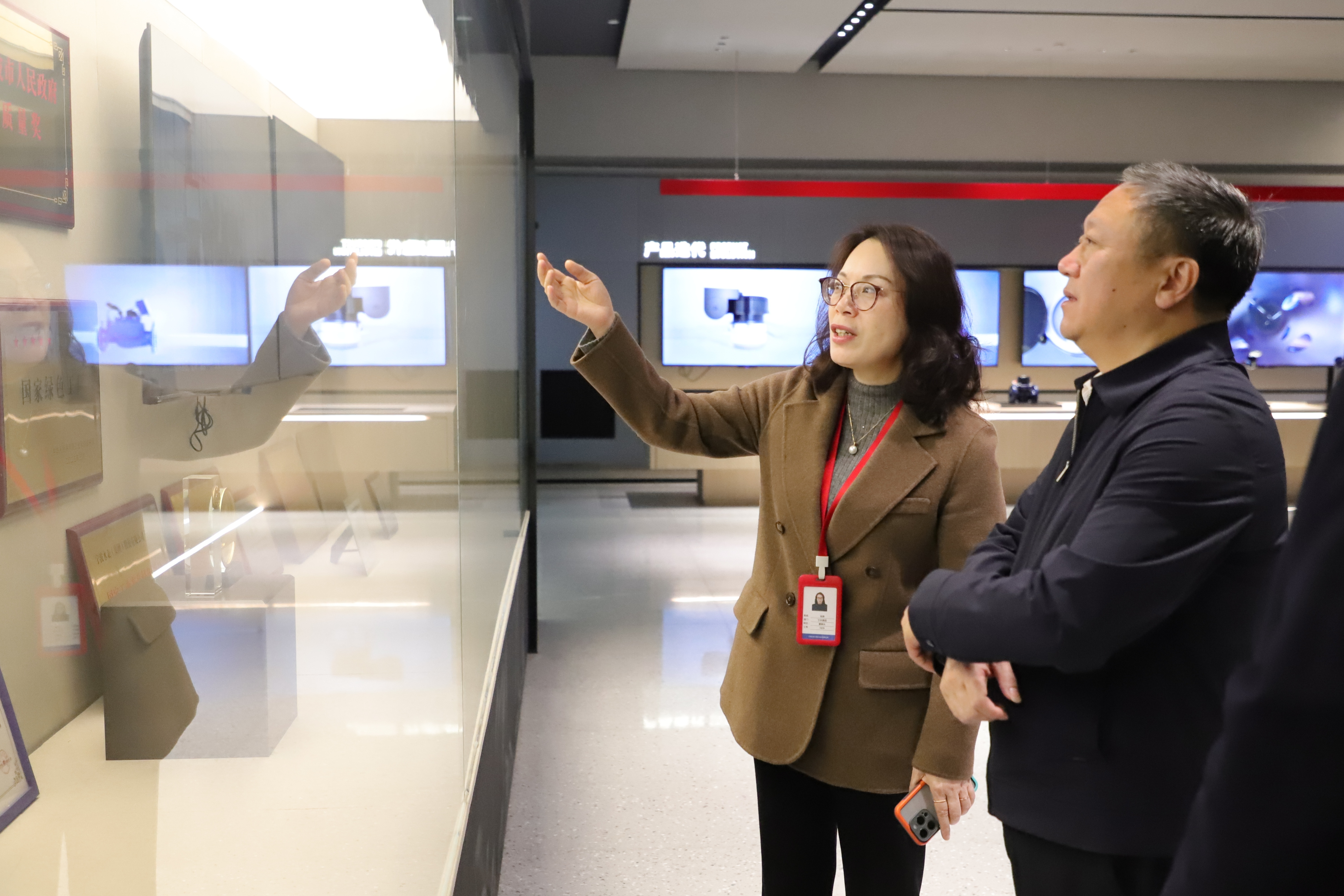 陈坚军一行实地参观了企业展厅,通过历史照片、荣誉证书、经典产品实物等展陈,详细了解宁水集团自创立以来的质量传承脉络、战略布局与创新成果。宁水集团在政府质量奖设立之前,便以严格的产品质量标准体系树立行业标杆,于1988年、1990年分别获颁国家优质产品银质、金质奖章,至今仍是宁波工业领域较早荣获国家级质量荣誉的重要企业代表。2020年,宁水集团获颁全国首张民用水表“二检合一”专项计量授权证书,充分体现计量检测领域的技术实力与质量公信力,持续践行宁波制造“质量为先”的优良传统。作为国家级制造业单项冠军企业,宁水集团积极运用物联网、大数据、云计算等技术,推动传统水表制造向数字化、服务化转型,促进物联网、人工智能与水务场景的深度融合。目前,企业已构建涵盖智能计量终端、智慧水务平台及供水管网全生命周期管理的完整技术体系,在供水管网监控系统、智慧水务大数据服务平台等领域形成显著技术优势。相关项目先后入选工信部大数据产业发展试点示范、制造业“双创”平台试点示范、移动物联网智能表计领域标杆案例,以扎实成果助力城市数智化建设。