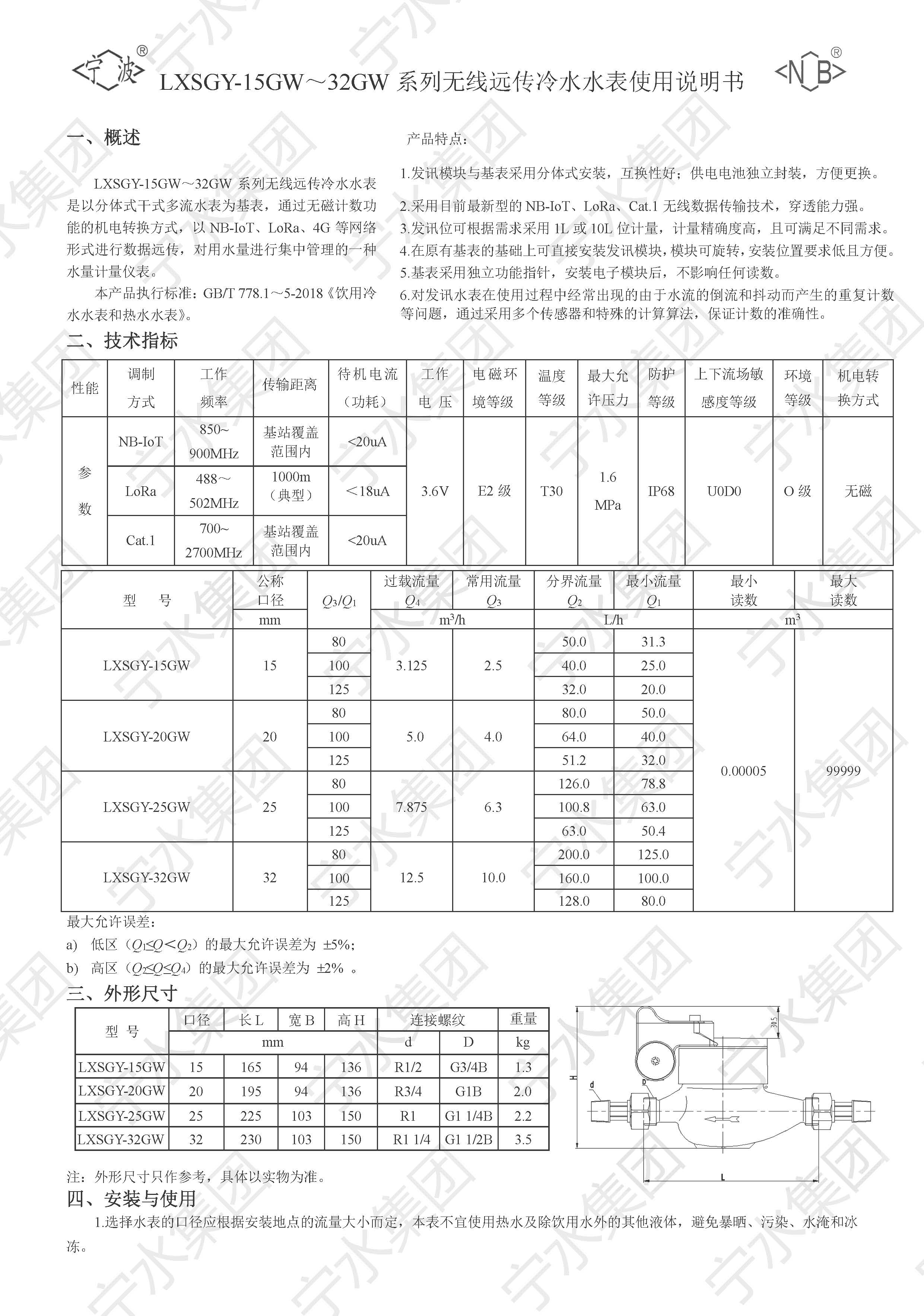 LXSGY-15GW_32GW系列无线远传冷水水表